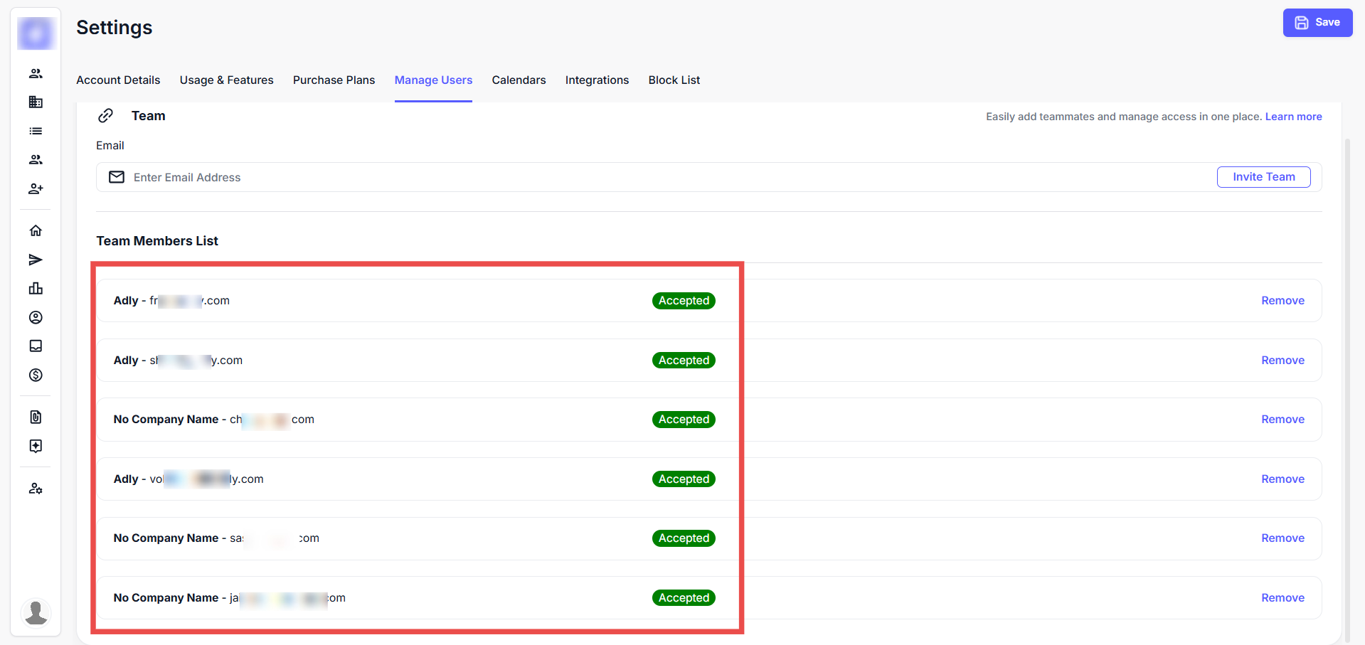 Effective collaboration begins with managing users seamlessly. The Manage Users panel lets you invite new members, monitor their invitation status, and remove members when needed — all from a single, easy-to-use interface.