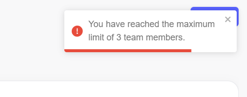 Note: If a user tries to add a user but their current plan doesn't include enough seats, an error message will appear as shown below.