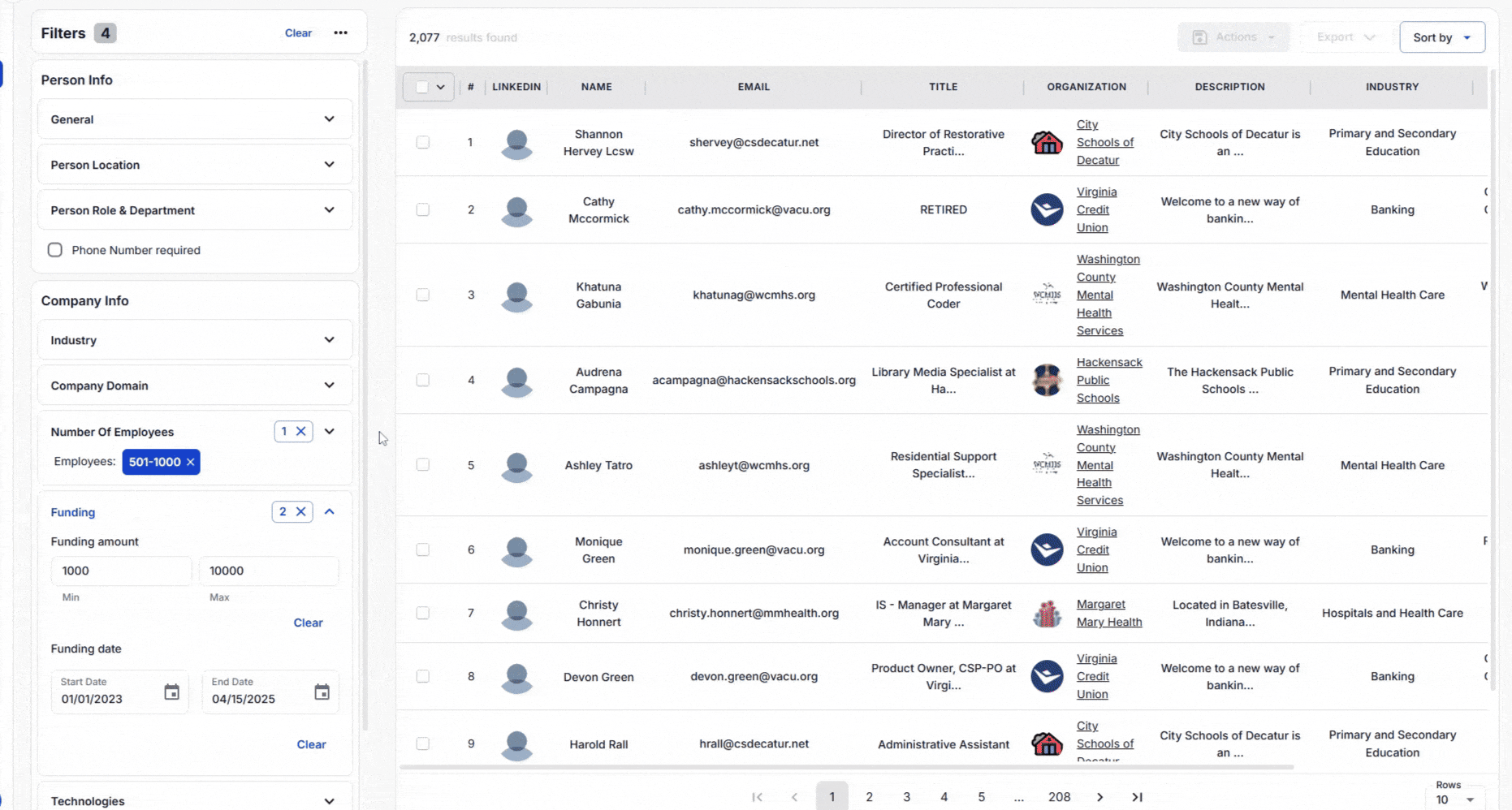Example: Filter mid-sized, fast-growing startups with 501–1000 employees and funding between $1,000,000 to $10,000,000, received between 01/01/2023 and 04/15/2025, to target organizations with the budget and growth potential to invest in your product.