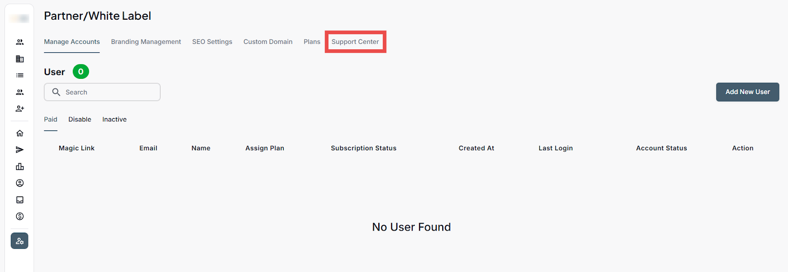 Step 1: Log in to your account and click the White Label icon on the Left-hand sidebar.